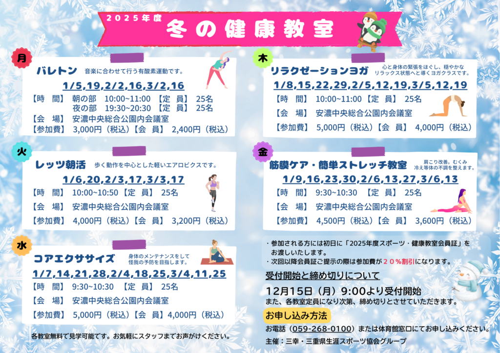この度、12月15日より2025年度冬の健康教室の申込みがスタートしました。